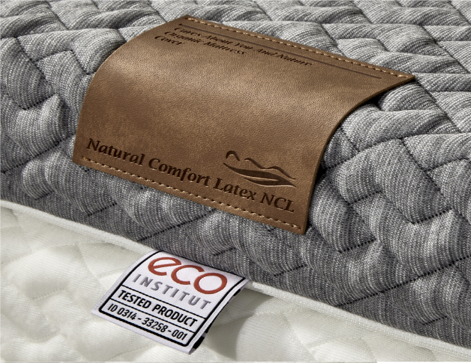 엔씨엘의 모든 천연라텍스 제품에는 독일 ECO 인증 마크가 부착되어 있습니다.